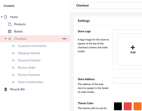 Review the settings available on the checkout page. After making any necessary changes, such as adding your logo or Store Address, Theme colour etc, ensure to Save and Publish the pages.