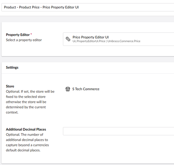 Reserved alias: Do not change the alias. The alias listed is required for integration with Umbraco Commerce.